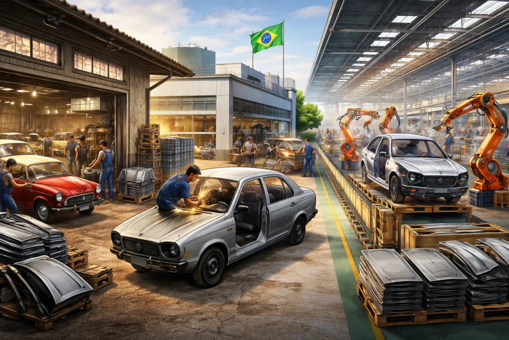 No início, grande parte das peças de lataria era adaptada ou produzida de forma artesanal. Com o crescimento da frota nacional e a chegada de novas montadoras, surgiram padrões mais rigorosos de fabricação, garantindo: